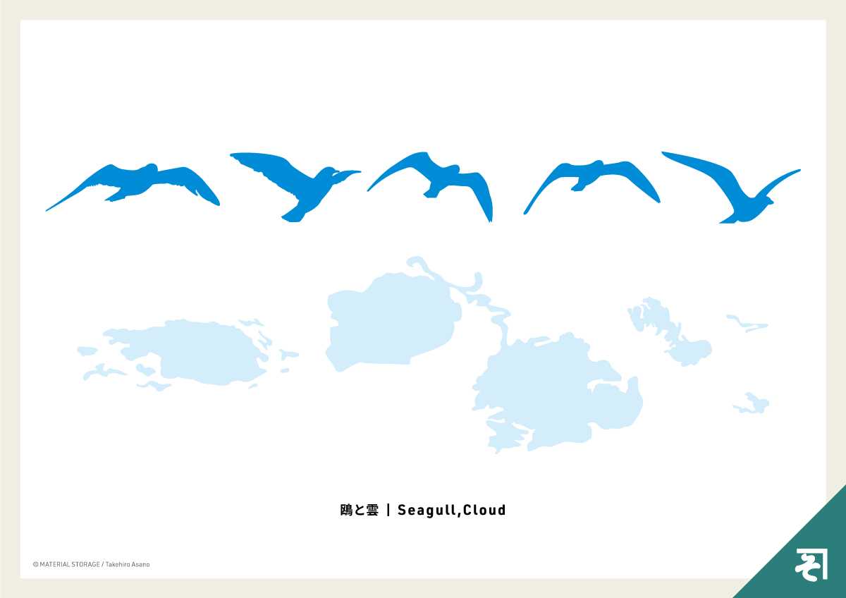 広がる空を悠々と飛ぶカモメたちを、印象的なシルエットで表現。漂う雲の形やカモメの配置によって、様々な空の情景が思い浮かびます。シルエットの色をお好みで変えて、多彩な雰囲気を演出してみてください。