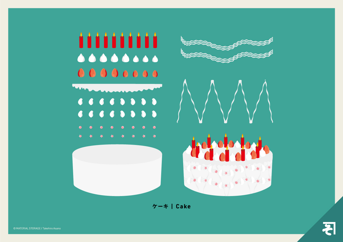 様々なお祝いイベントの主役、デコレーションケーキをシンプルに描きました。誕生日を祝う気持ちや、特別な日を記念する食べ物としての存在感を表現。デザインにハッピーな雰囲気を加える素材として使いやすいです。お好みで調整してください。