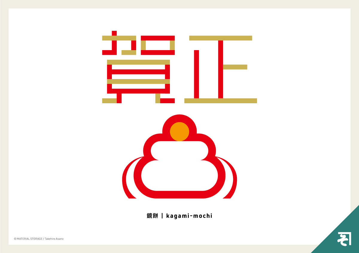 日本の伝統的なお正月の飾り、鏡餅をポップで現代風にアレンジしたイラスト。縁起の良いモチーフを、より気軽にデザインに取り入れられます。賀正の文字も入れてあります。調整はお好みでどうぞ。