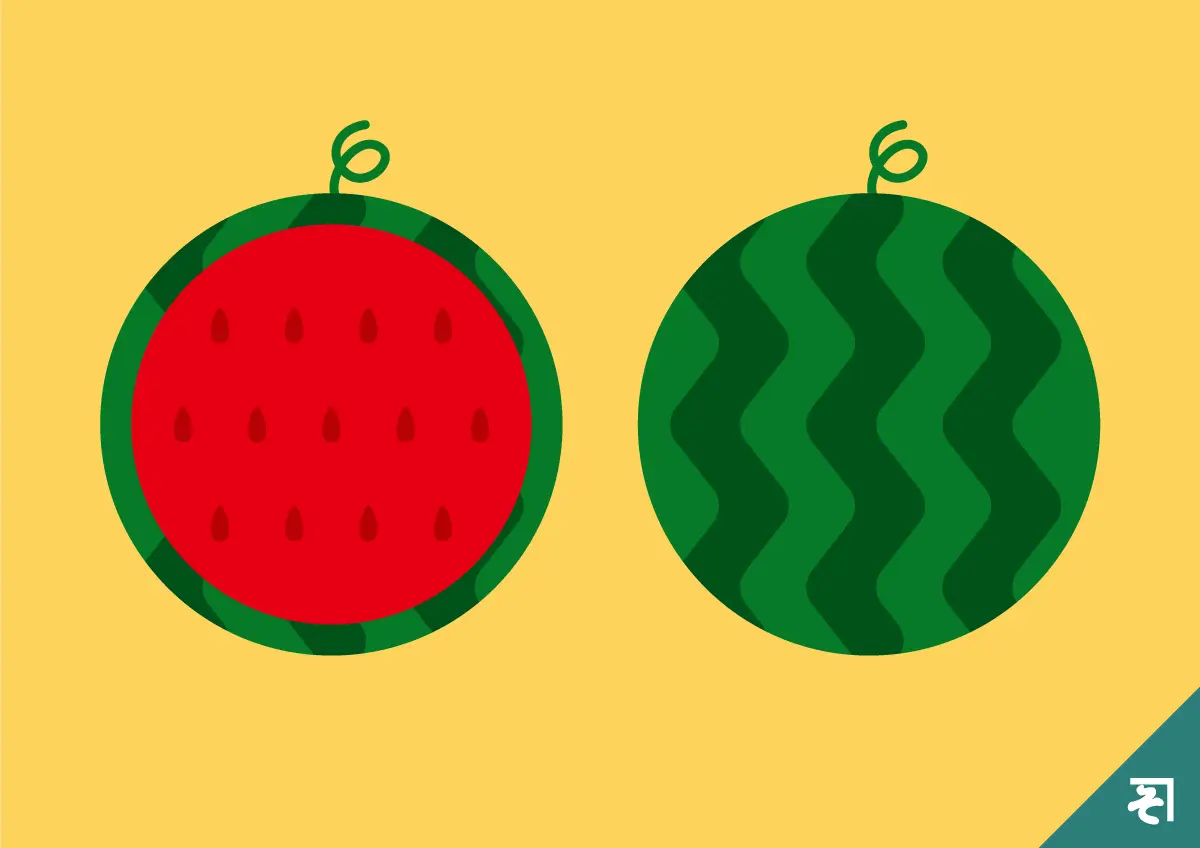 夏といえば、やっぱり食べたくなるのがスイカですね。特徴的な半月型と種を、フラットデザインでシンプルに表現しました。この形があるだけで、一気に夏のムードが高まります。ご自由にお使いください。