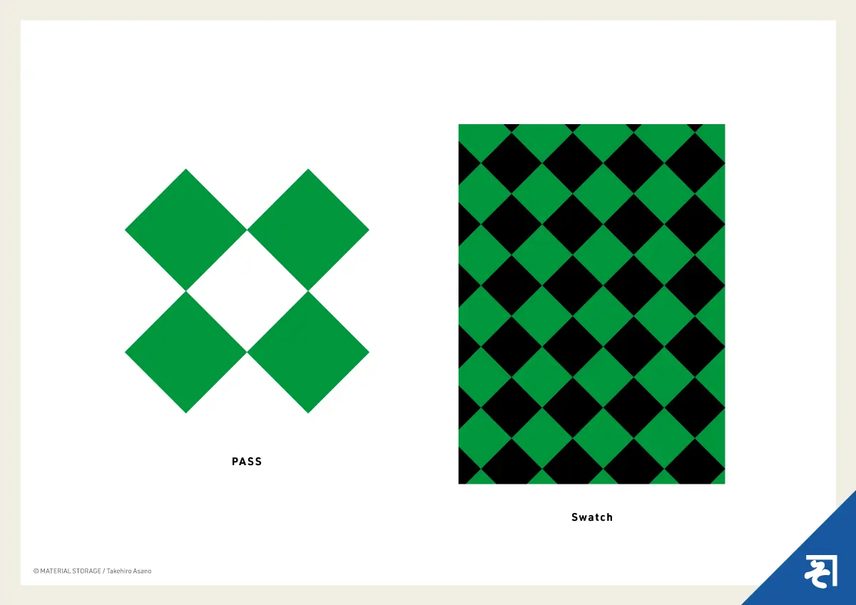 定番の市松文様もいいですが、少しひねりを加えたい時におすすめなのが、この「斜市松」です。伝統的な和の文様を、シンプルに斜めにしただけですが、見た目の印象はがらりと変わります。この斜めのチェック柄は、デザインに動きと奥行きを与えてくれる気がします。色を紅白や藍白などに変えるだけで、お祝い事から粋なデザインまで、様々な和風のシチュエーションに対応できる便利なパターンです。