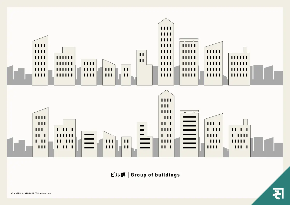 高層「ビル」がひしめき合う、「街」のスカイラインをイメージした「シンプル」なイラストです。この「ビル群」のシルエットは、都会の発展や活気を表現するのにぴったり。ビジネス系のプレゼンテーションや、都市観光のウェブサイトなど、「建物」のイラストが欲しい様々なシーンで活躍してくれるでしょう。フラットなデザインなので、色を変えるだけでも大きく印象が変わります。