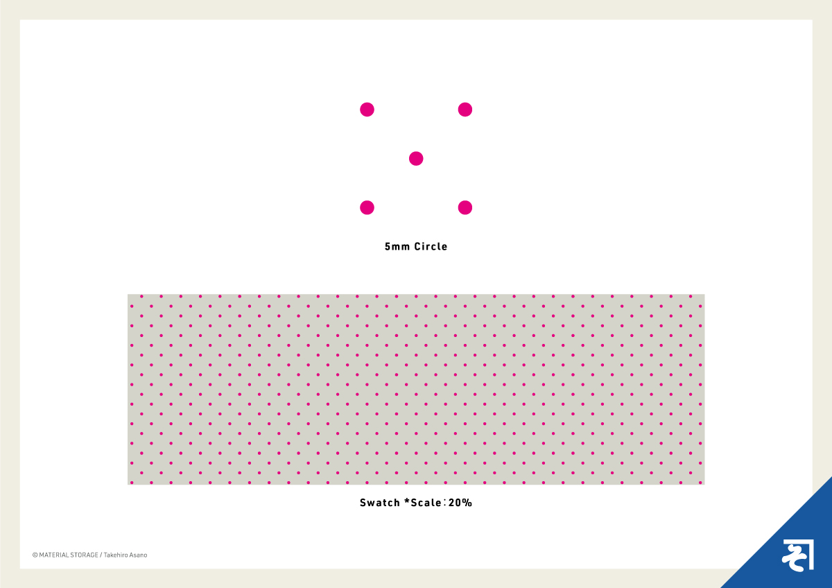 「シンプル」な「丸ドット」のパターンですが、今回は直径5mmという「少し大きめ」のサイズで作ってみました。この「大きめ」のサイズ感が、デザインにレトロな可愛さをプラスしてくれます。もちろん「定番」の柄なので、使いやすさはお墨付き。さらに、パターン自体を縮小して使うと、背景に「スクリーントーン」を貼ったような効果も出せる、一つで二度美味しい素材です。色などの調整はお好みでご自由に。