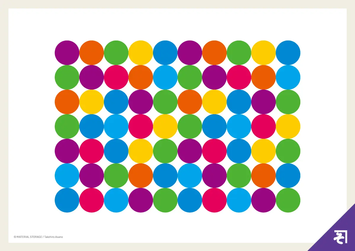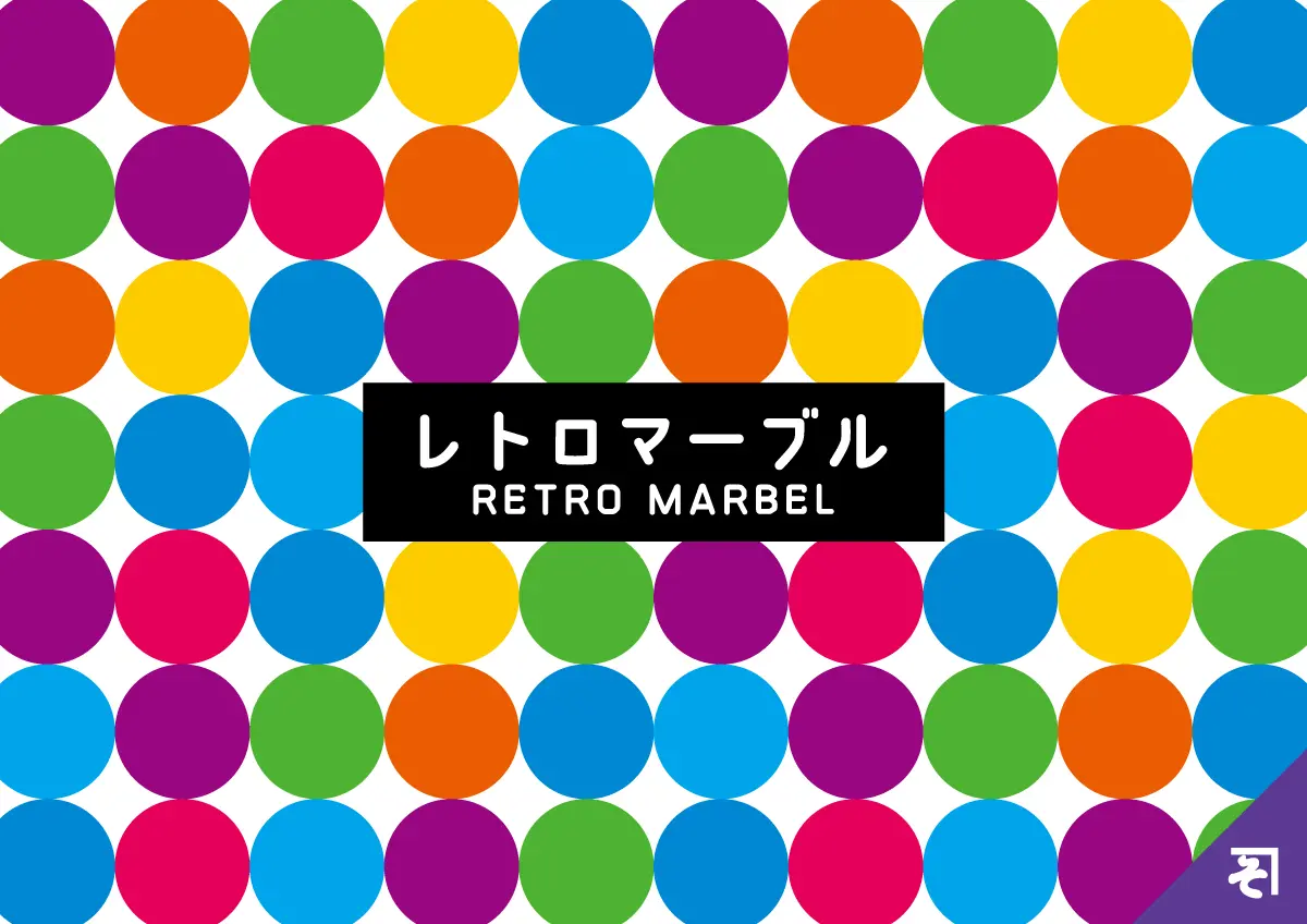 丸い粒のモチーフがリズミカルに並び、レトロな可愛らしさを持つ背景模様です。この模様は、チョコレート菓子のパッケージに見られるような、視覚的に楽しいパターンを表現しています。カラフルなドットが作り出す規則性と賑やかさが、デザインに活気と懐かしいポップさを加え、レトロなテイストを演出します。