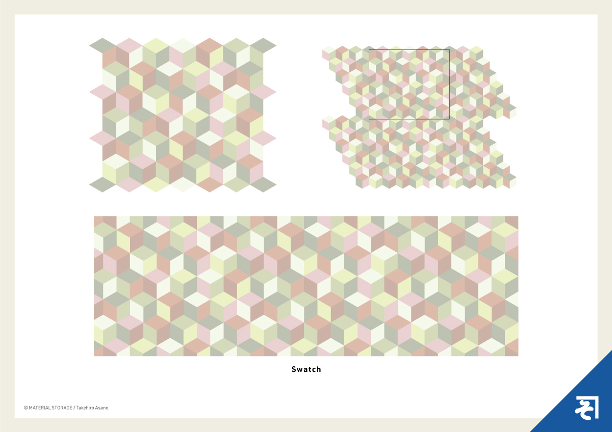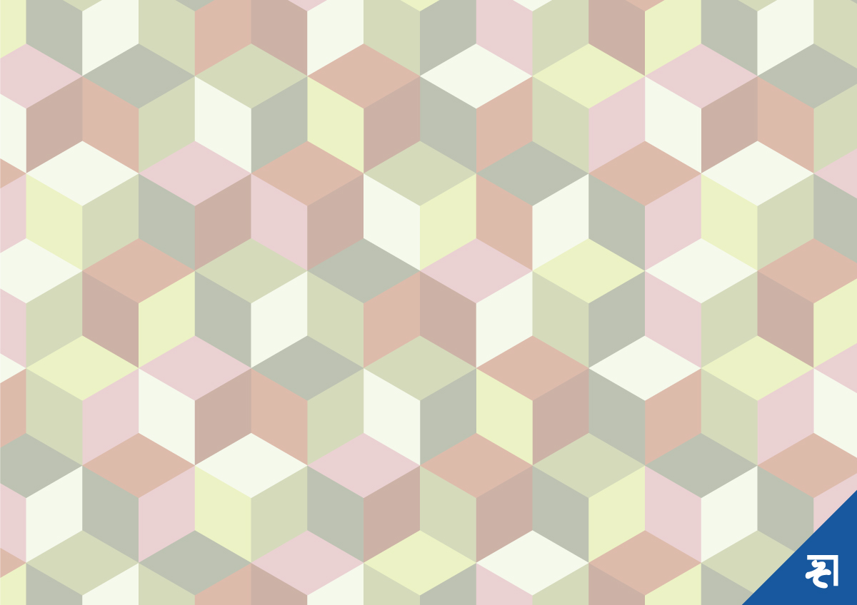 六角形(ヘキサゴン)をキューブ状に構築し、視覚的な立体感を持たせたパターンです。このパターンは、ペールトーンによって全体が柔らかい印象に統一されている点が特徴です。デジタルや通信関係の媒体で、動きのある背景テクスチャとして活躍しそうです。トーンや色などの調整は自由自在ですので、お好みに合わせて活用してください。
