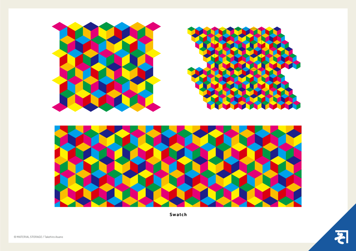 六角形をベースにしたキューブで構築。強い色合いでビビットな印象に仕上げました。これだけで絵になる間が持つパターンです。トーンや色などの調整はお好みで。