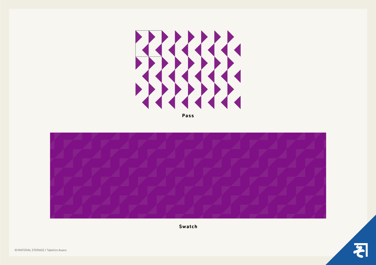 三角で構成されたシンプルなパターン。うねうねして見えますね。斜めに使うといい感じです。斜めにするにはアピアランスの変形で「オブジェクトの変形」のチェックを外すのが簡単です。色などの調整はお好みで。