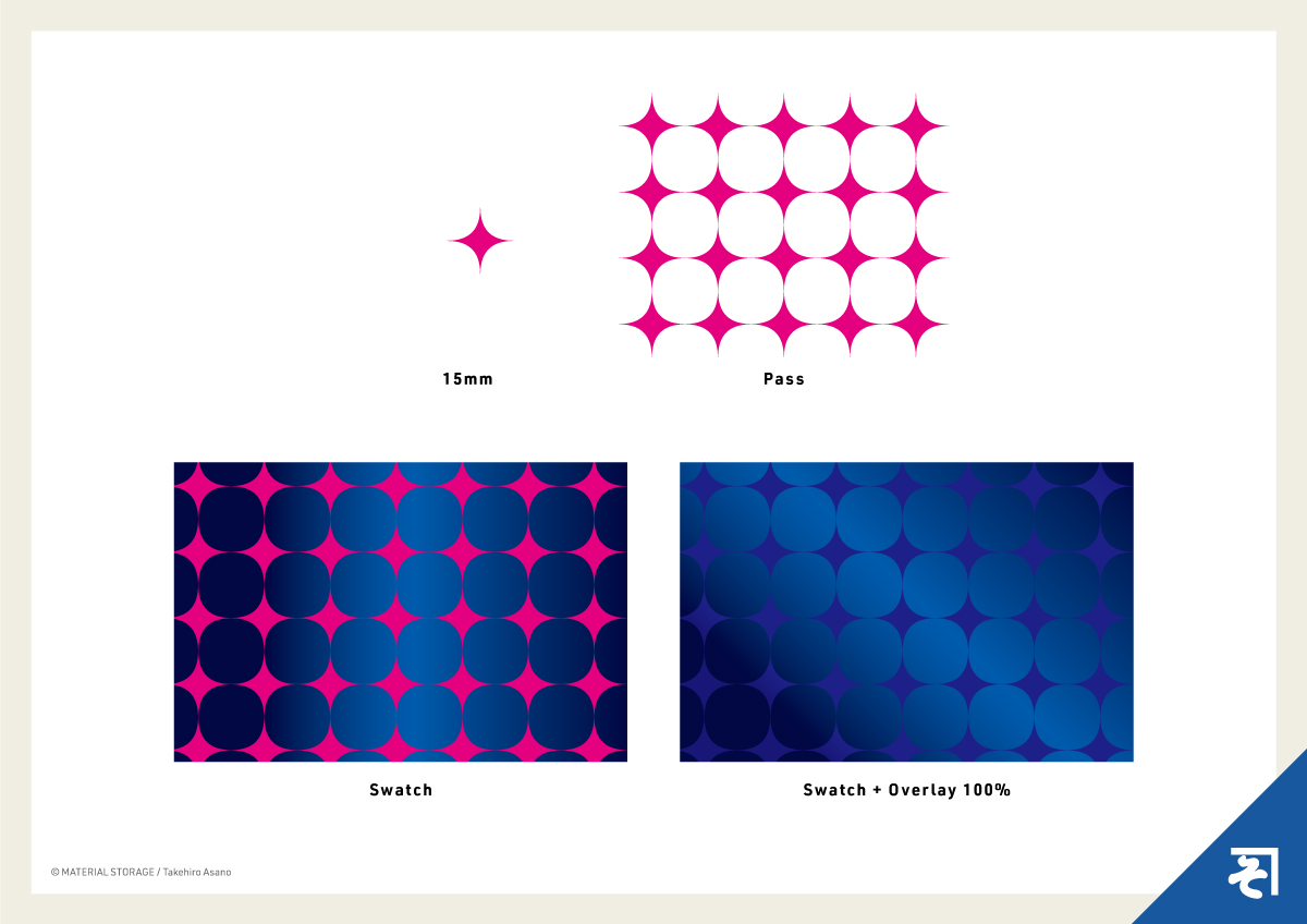 キラッ!の図形を並べたシンプルなパターンです。背景にグラーデーションを持ってくるのがポイント。グラデ背景の上にパターンをオーバーレイ100%でのせるとキラキラに見えます。背景の色味に合わせてパターンの方の色味や効果も調整が必要ですので、自分好みのいい感じのところを見つけてくださいませ。