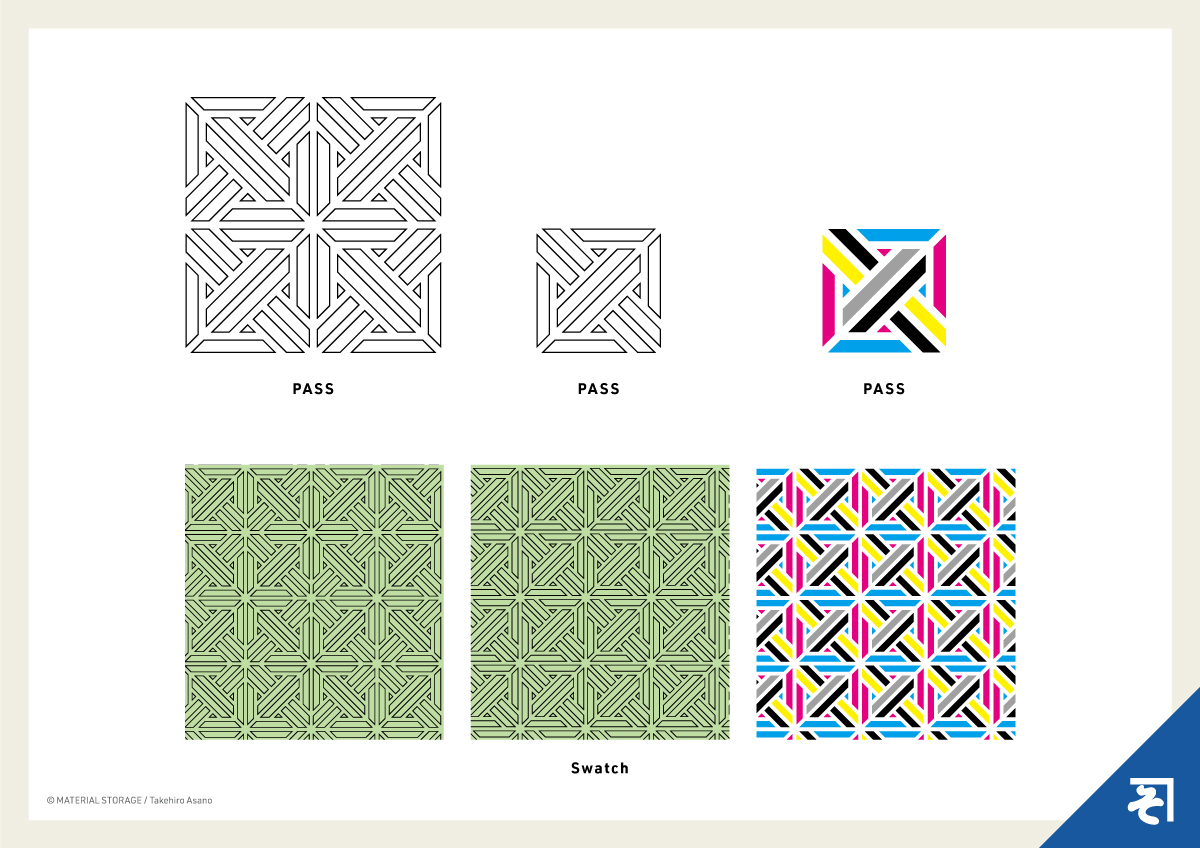 十字を形作る幾何学的なラインで構成された中華テイストのパターン。リズミカルな配置が心地よい印象を与えます。色をつけるだけでも雰囲気が変わりますよ。一部をパターン化しても面白いです。色や構成などお好みで。